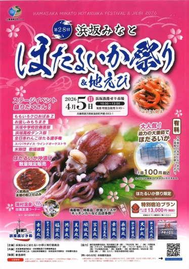 兵庫県北部の新温泉町「浜坂漁港せり市場」で開催される「ほたるいか祭り&地えび」のご紹介です。