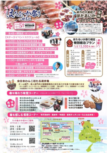 「ほたるいか祭り&地えび」は、日本海の春の味覚が愉しめるイベントです。
