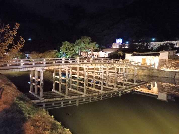 鳥取城跡では、お城とイメージするような建物などは残っていませんが、石垣や復元された大手門「中ノ御門表門(なかのごもんおもてもん)」や入り口である「擬宝珠(ぎぼし)橋」などを愉しむことができます。