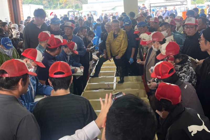 サイズなどで選別され、11/6 12:00(正午)に浜坂漁港でも初セリが実施されました。