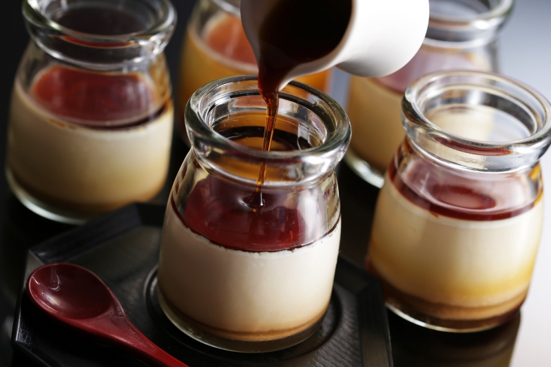食後には、”冷たい”当館自家製の「きなこプリン」をテーブルにお届けいたします。