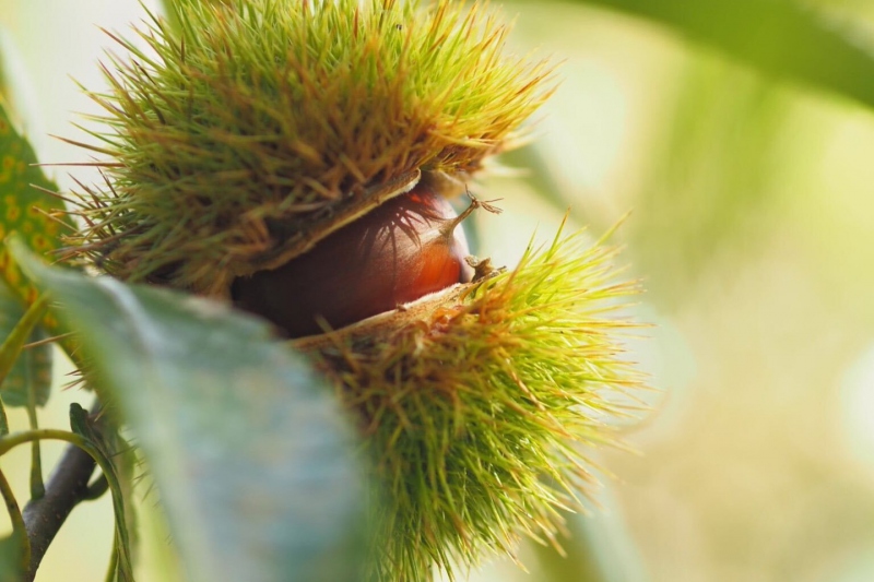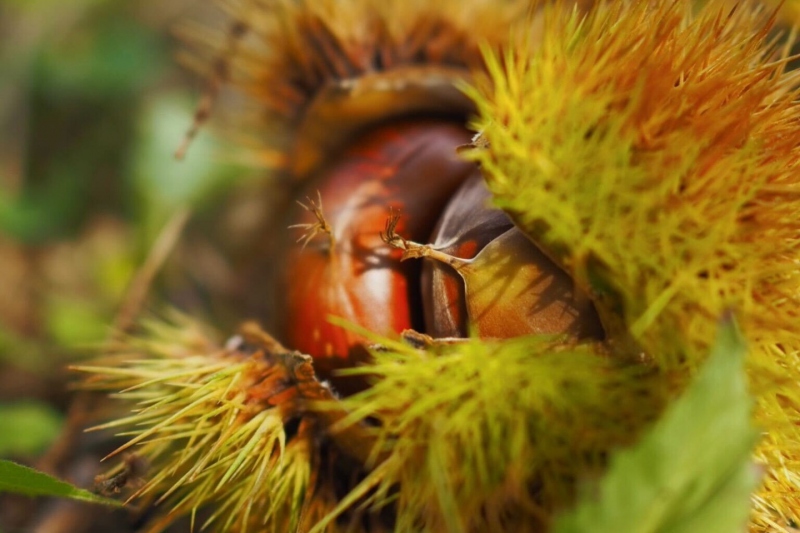 鋭いとげのある”イガ”から栗の実がひょっこり。