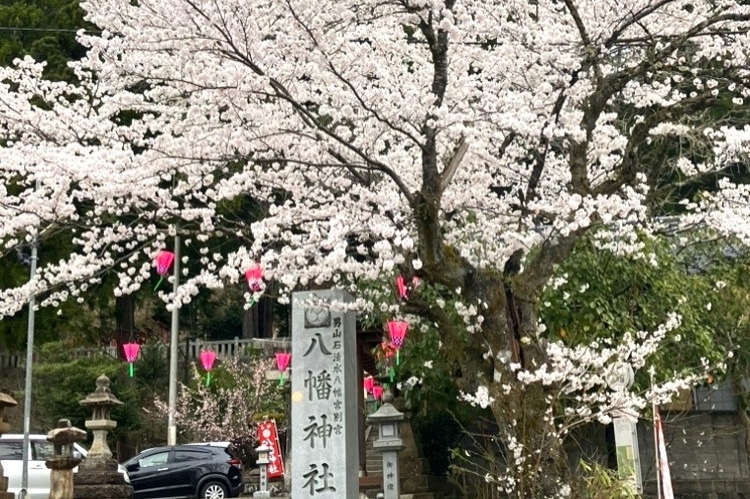 湯村温泉バスターミナル(全但バス)目の前の高台にある「八幡神社」は、京都・石清水八幡宮の但馬国/勝楽寺別宮として御奉祀された神社です。