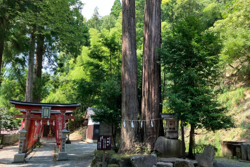 境内には日本三古塔の1つで、千年釜と呼ばれる特異な形の五輪の石塔や、樹齢数百年の古木で、縁結びや子宝に御利益があるとされる、御神木の「夫婦杉」などがあります。