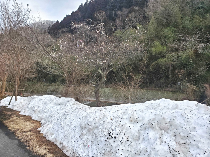 湯村温泉周辺にまだまだ雪は残っていますが、春は近づいていますね。